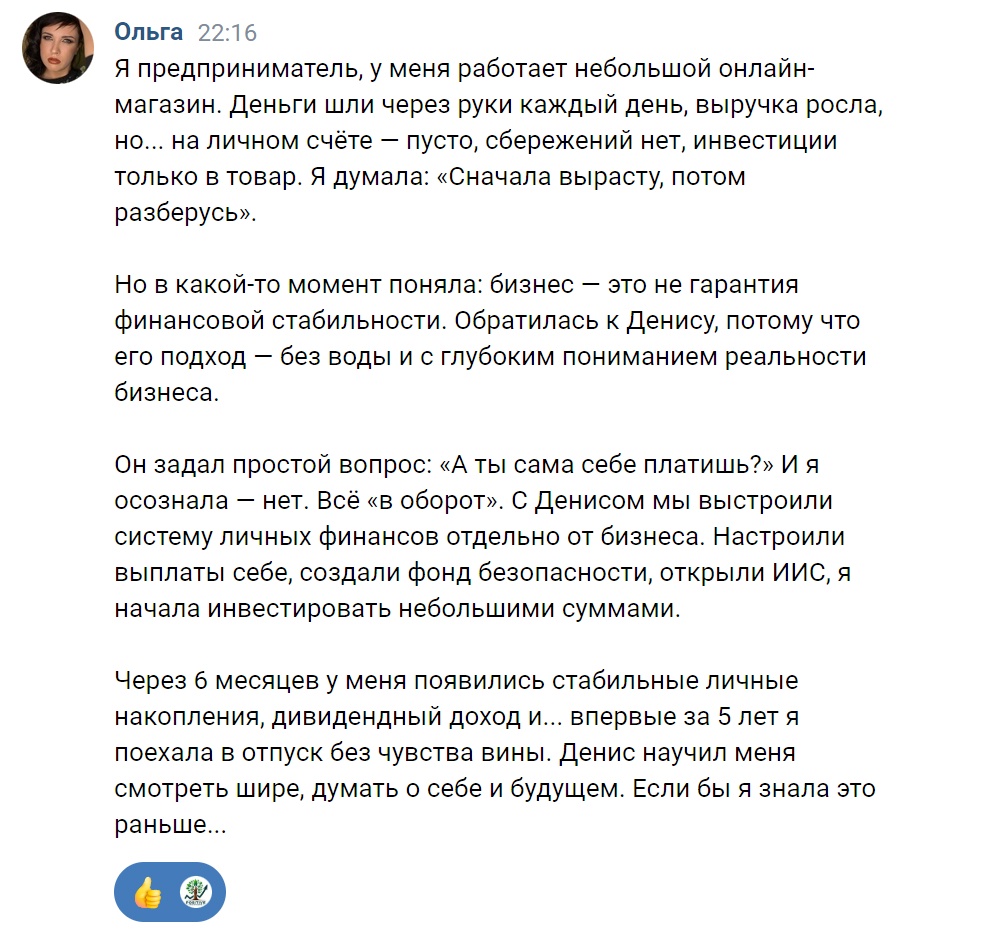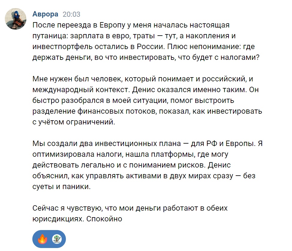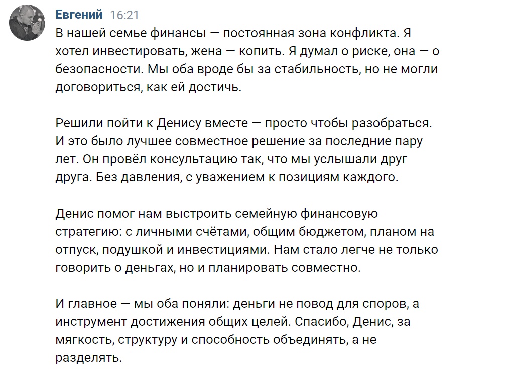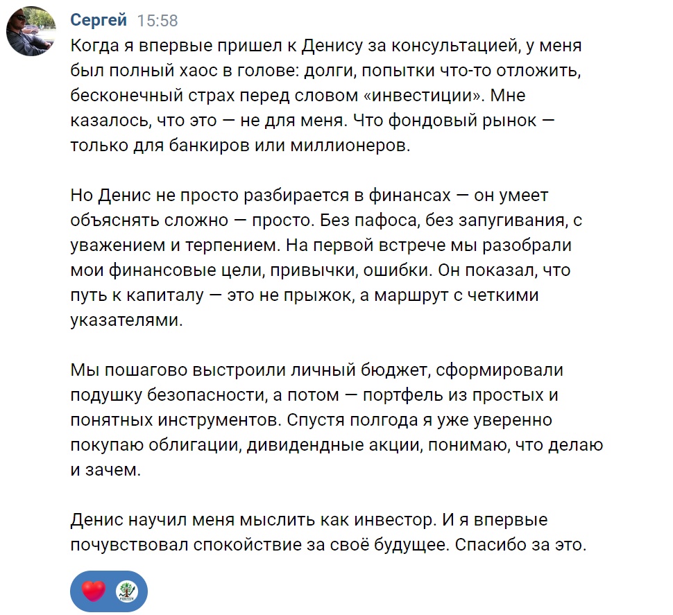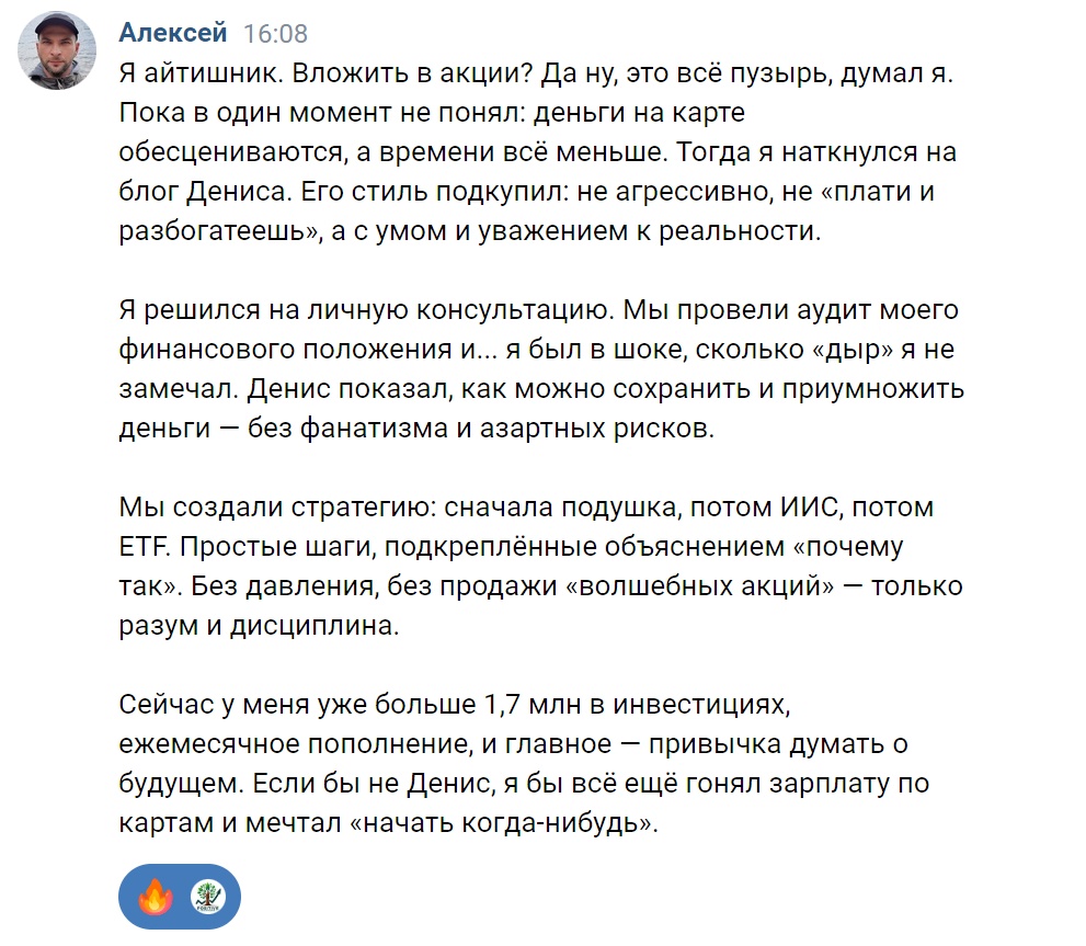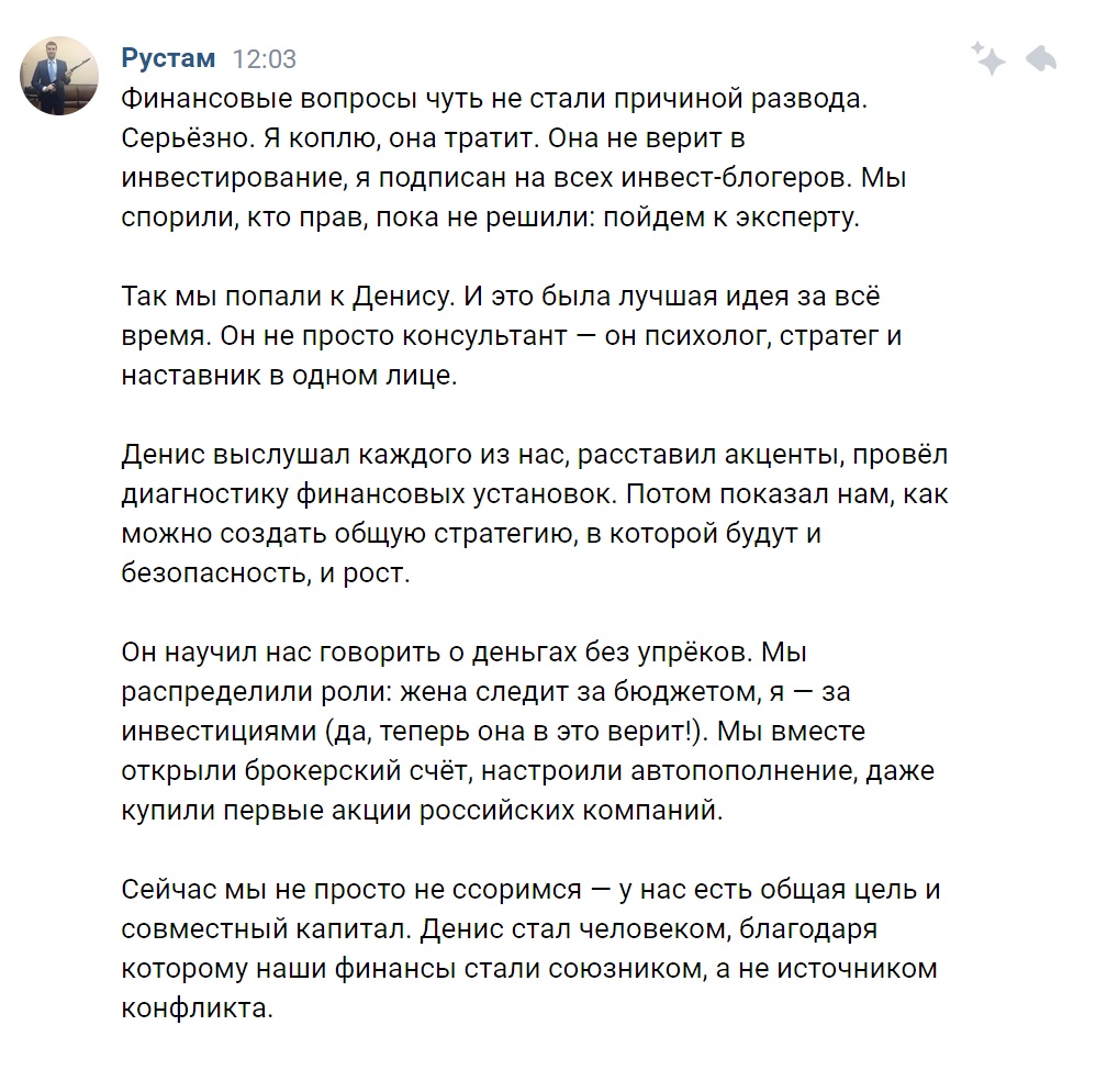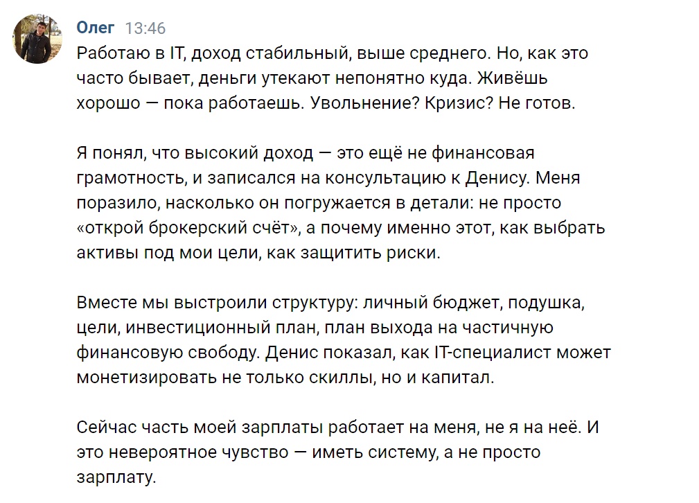 Я делаю то, что действительно меня вдохновляет: помогаю людям понять, как работают деньги, и как сделать так, чтобы они начали работать на вас. Не через сложные формулы и заумные термины — а через понятные шаги, системный подход и поддержку.